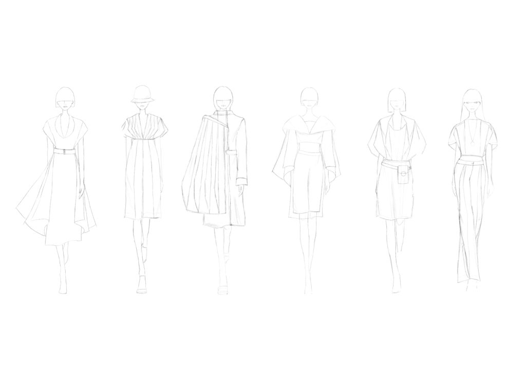 Week 4: Plan the collection. Start drawing final illustrations (outlines to be completed). Decide on fabrics to be used.